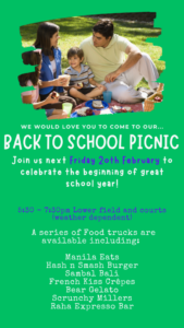 The gate will open at the normal time of 3 pm. Please do not park in front of the gate waiting for it to open. Please go and park your car and walk in if the gate is not open. This applies to every school day, not just wet days.