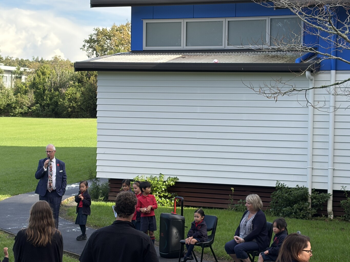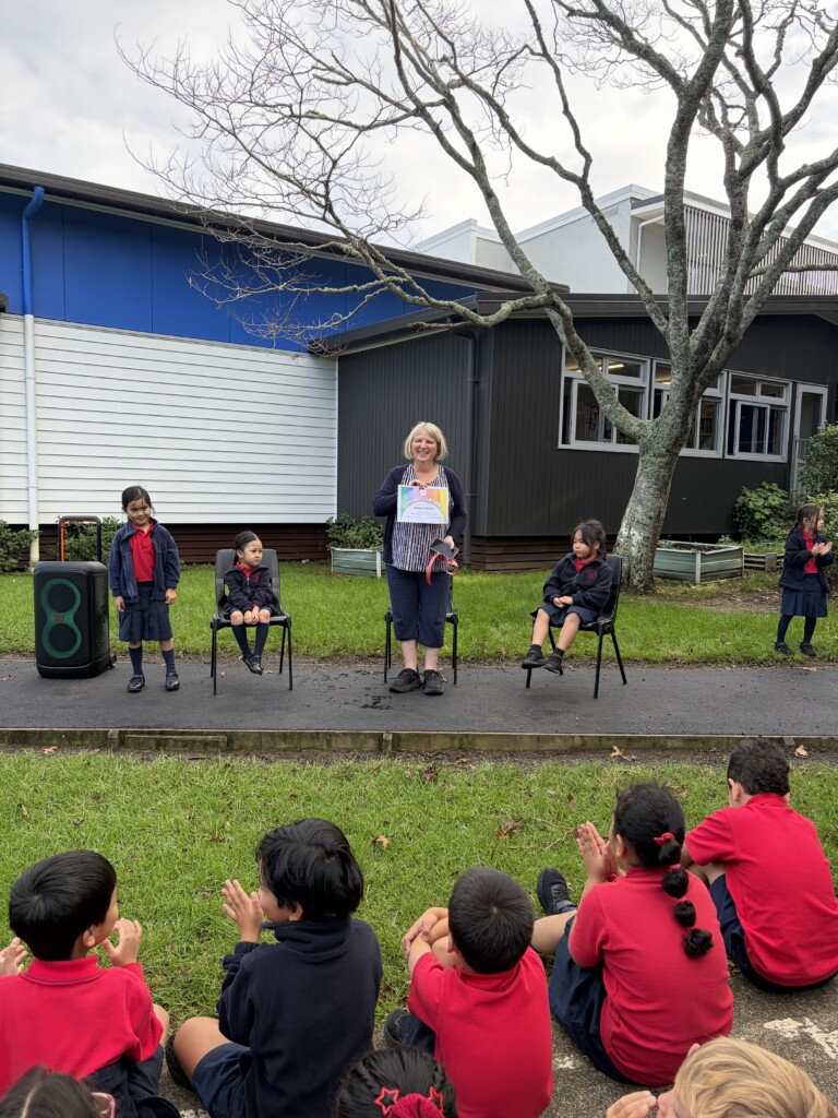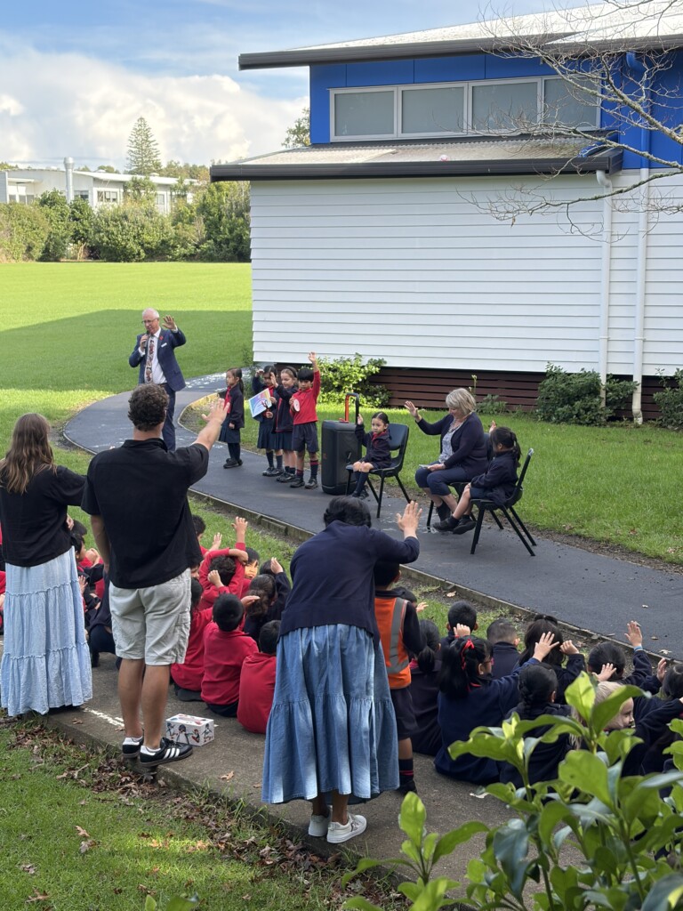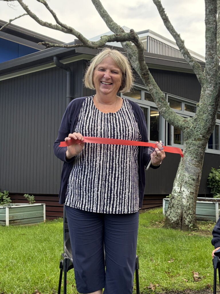 On the first day of this term the Kiwi team attended the blessing and ribbon cutting of Mrs Pratt’s Path. Over the break that path at the back of the school hall was tar-sealed. This path is used daily by the Kiwi team for their morning run.