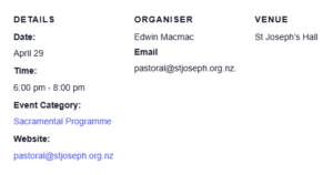 Any questions, click on this link or contact Edwin MacMac at pastoral@stjoseph.org.nz.